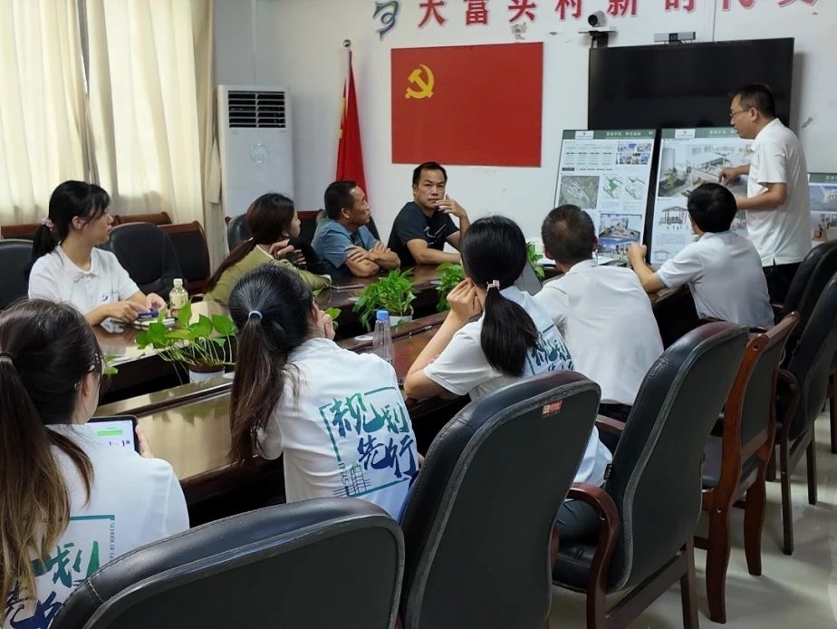 丰阳镇大富头下辖茶亭村始建于明万历年间,自古便是连州通往湖南茶盐古道上的重要驿站,因古道穿村而过,且村中有横凉亭而得名。在前期规划针对该村提出的“把脉、理村、造境、兴道”和美乡村建设八字方针基础上,实践团以人居环境提升为切入点,重点对文化广场和村庄入口两个节点进行现场勘察、概念提取和规划设计,部分设计成果达到施工图深度,并就设计方案和具体做法同村委、施工方进行多次三方现场沟通,为该项目的早日落地实施打下坚实基础,以实际行动助力茶亭人居环境提升、和美家园示范村建设。