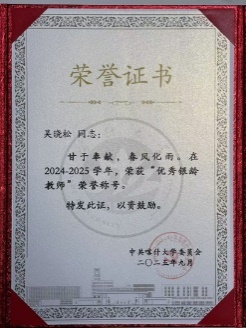 吴晓松老师的《银发映昆仑丹心筑杏坛——我的援疆支教育人故事》获学校 2025 年“讲述我的育人故事”征文二等奖。