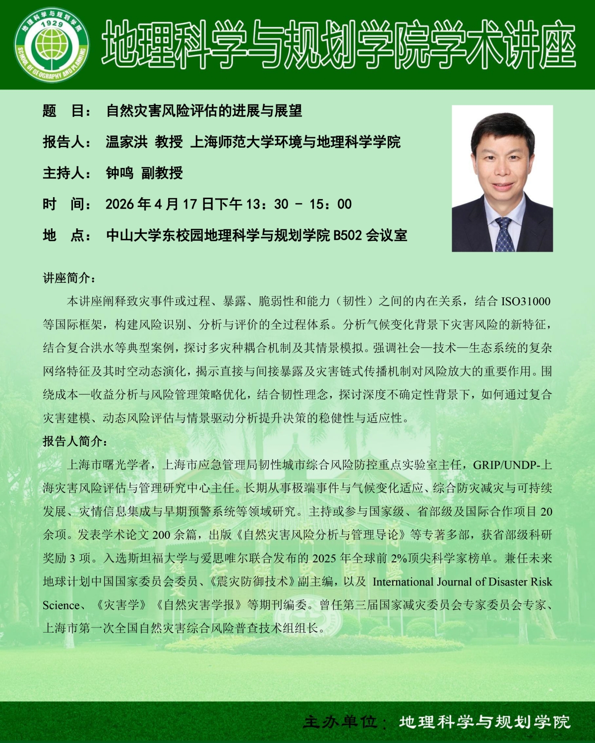 讲座预告 | 自然灾害风险评估的进展与展望