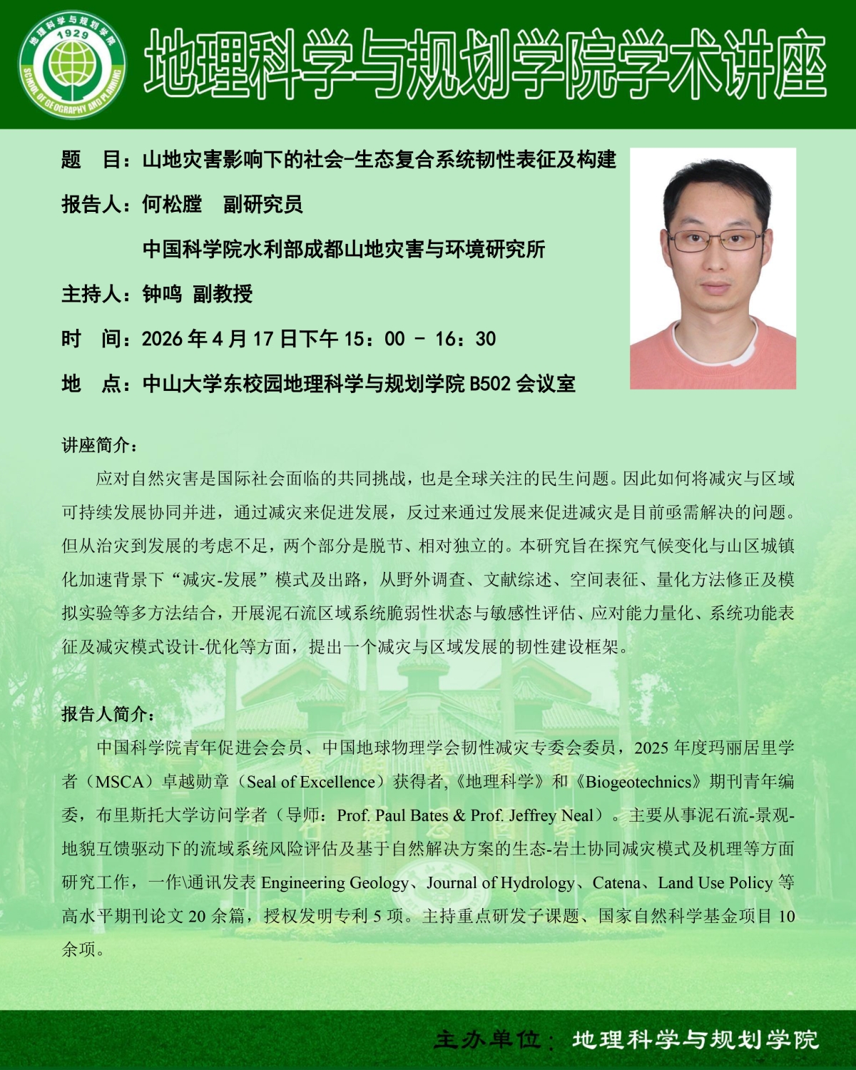 讲座预告 | 山地灾害影响下的社会﹣生态复合系统韧性表征及构建